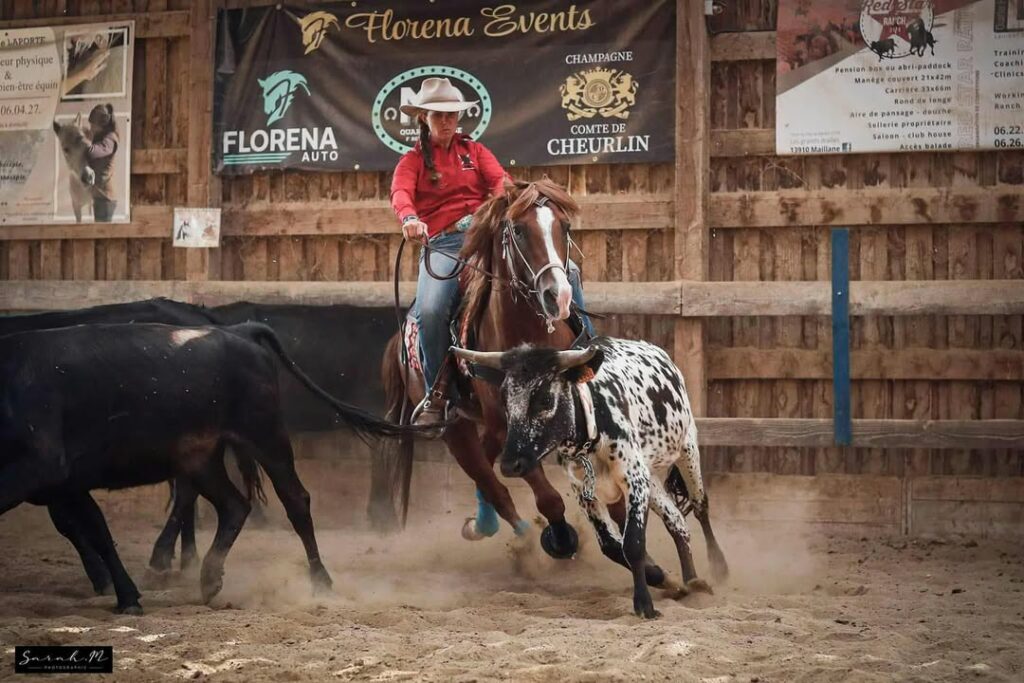 Formatrice en équitation western, spécialisée dans le tri du bétail et les disciplines ranch.