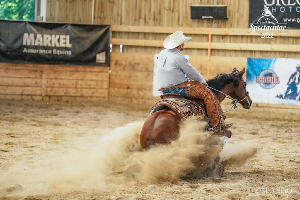 Ce que j’aime dans le reining, c’est le dressage que l’on apporte aux chevaux et qui nous aident derrière à avoir une vraie polyvalence. Une fois que mon cheval a des bases solides en reining, je peux l’emmener facilement au travail de la vache. Et même en roping, plus précisément team roping. Les chevaux évoluent plus vite quand ils ont un dressage de reining. Le plus difficile pour moi est d’avoir mes chevaux identiques, à la maison comme au show.