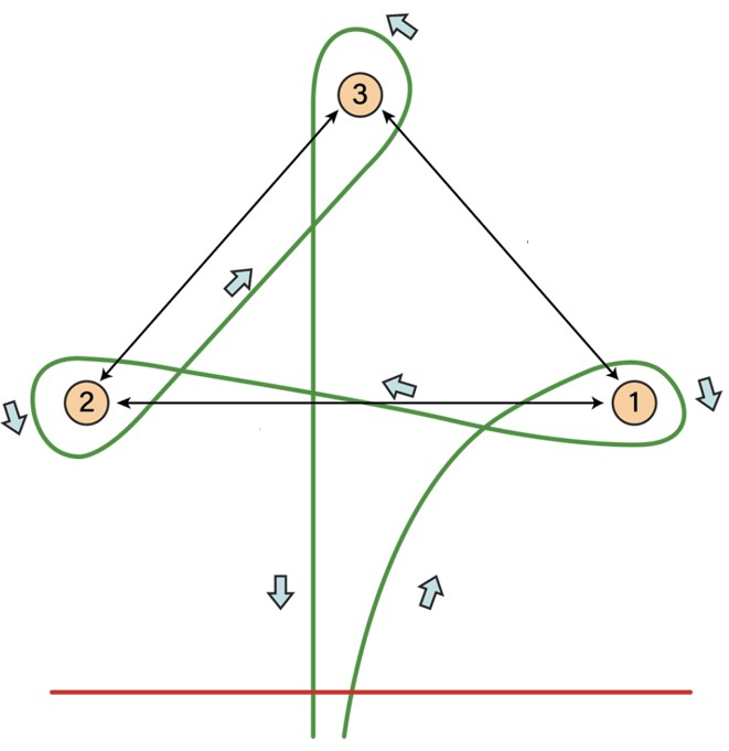 • Le cavalier et son cheval réalisent une figure en trèfle à 3 feuilles autour de 3 barils. 2 possibilités selon les préférences du cheval et du cavalier :