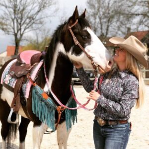 J’ai découvert l’équitation western lors de mon anniversaire des 14 ans grâce à un spectacle très réputé dans un grand parc d’attractions. Ça a été un vrai coup de cœur. À partir de ce moment-là, je me suis passionnée pour la culture western et amérindienne.